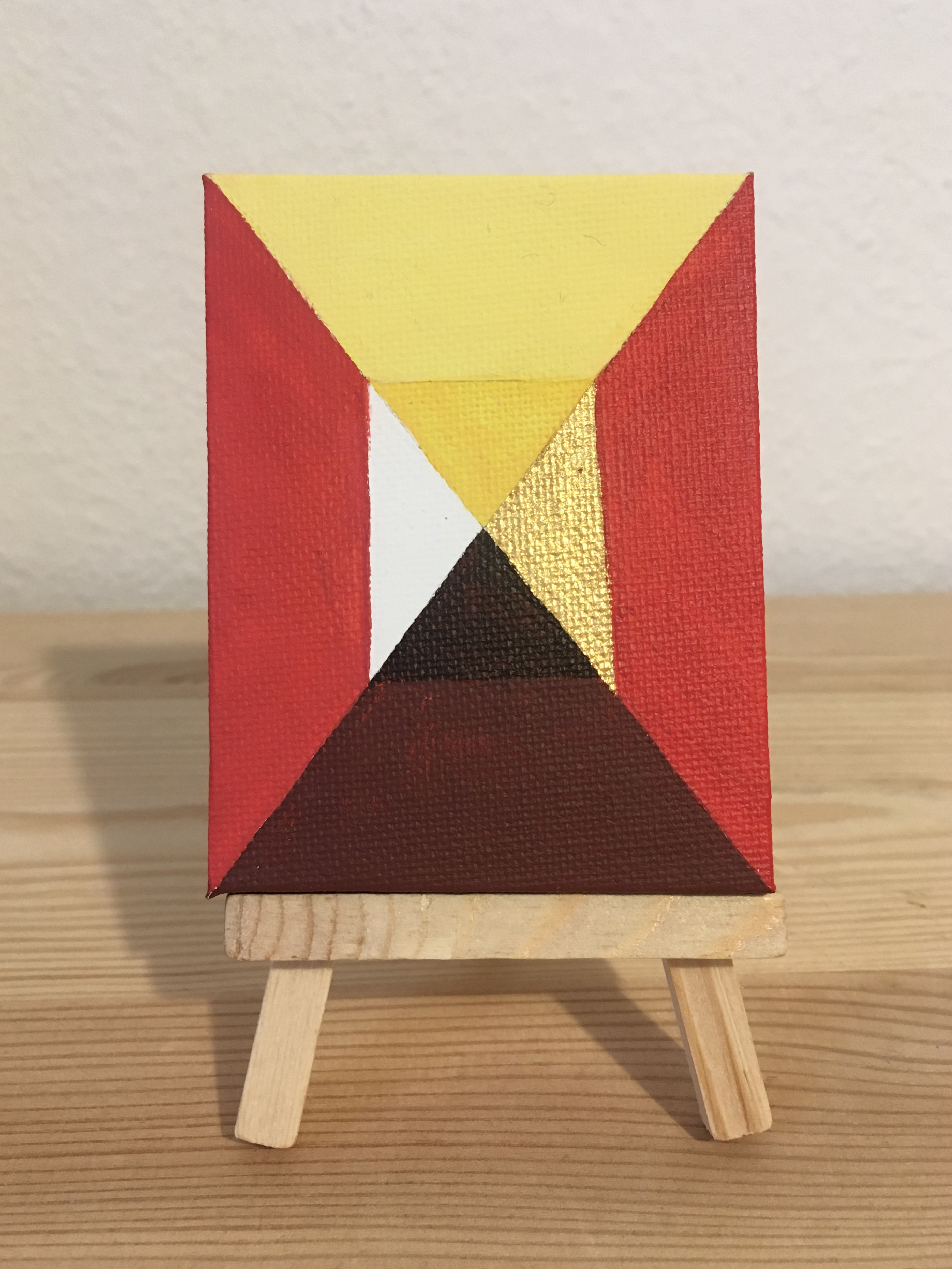In my free time, I enjoy painting and at some point I was wondering how to address mathematicians in an efficient way. I figured out that creating slight breaks of symmetries and patterns does the job quite well. Geometrische Gemeinheiten is the German term for geometrical provocations. Most of them are painted on mini canvas. “Enjoy”! *
